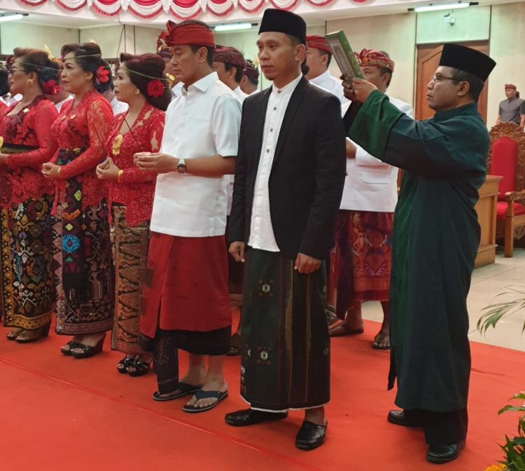 Uniknya, H. Mulyadi yang memang berlatar santri, menggunakan Sarung saat pengambilan sumpah jabatan dalam sidang paripurna DPRD Kabupaten Buleleng.